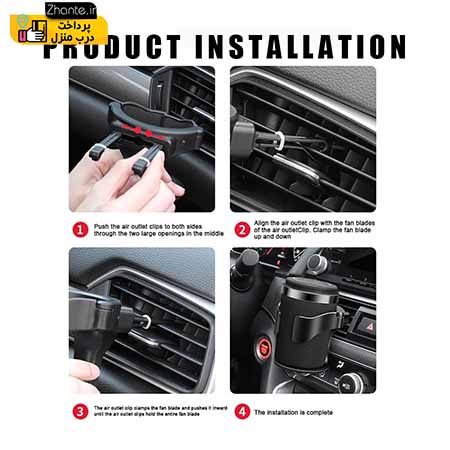 جا لیوانی از مواد کاملاً جدید ABS و بالشتک ساخته شده است تا صدا و لرزش را در حین رانندگی کاهش دهد. طول دسته پایه را می توان با توجه به تمایل داشبورد تنظیم کرد. اطمینان حاصل کنید که نگهدارنده را می توان صاف و محکم قرار داد. این محصول مناسب برای خودروهایی که شیارهای تهویه مطبوع آنها افقی می باشد قابل استفاده است.